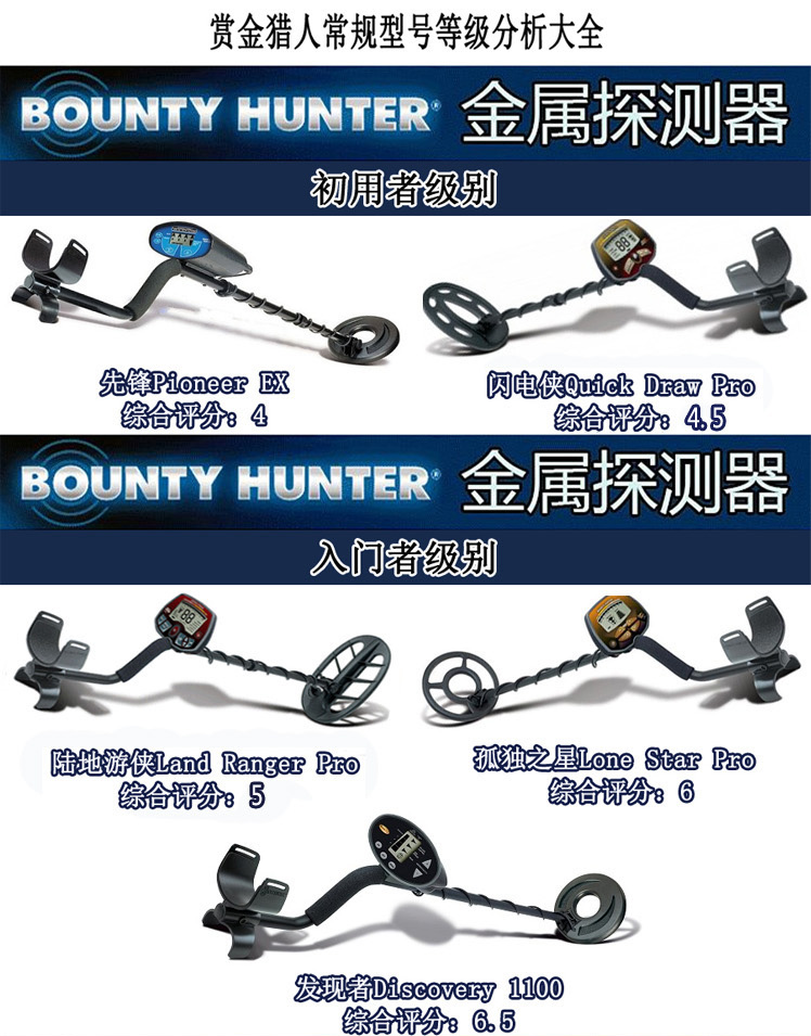 相信大家都知道赏金猎人是探宝爱好者们不得不提的品牌,Bounty Hunter 赏金猎人成立于1975年,Bounty Hunter目前是全世界最大的地下野外探宝地下金属探测器制造商,世界先进的地面探测产品,汇集了Bounty Hunter公司35年的技术经验,拥有多项的专利技术,尤其适合有特殊需要的专业人士使用。Bounty Hunter公司的产品均采用国际上先进技术设计,且采用世界上优质的元器件制成,在业界赢得了良好声誉。 Bounty Hunter 赏金猎人是全球第一大地下野外探宝地下金属探测器品牌,根据美国2014年2月发布的贸易白皮书,Bounty Hunter 赏金猎人2013年全球销量达到3000万台以上,占据了全球近60%以上的地下野外探宝地下金属探测器市场份额。这是Bounty Hunter 赏金猎人连续10年蝉联全球地下野外探宝地下金属探测器销量冠军。