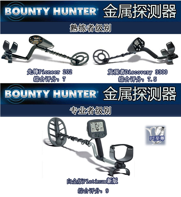 而赏金猎人中高级别高配置的则为Platinum新款白金版,可谓赏金猎人中的王者!白金版的灵敏度较之陆地游侠、闪电侠等型号明显高出许多,地平衡能力更完善,且识别金属偏差控制在3刻度的数值内,白金版2016测试款于2016年中在美国上市,此后Bounty Hunter经过几年的测试改进将其升级为新款,Platinum新款白金版于今年正式在国内上市,广受好评。