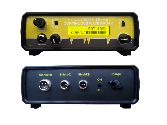 此外,在TR-V8发送与接收阶段产生的适时的退耦不影响其发送与接收能力的增加。与电磁波术不同,TR-V8的脉冲感应线圈几乎可以被增加到任何尺寸,这样,就会建立起一个较大的长期磁场。我们可选用多种组合的综合天线,它们更加灵敏且探测度更深。TR-V8运用的是由短脉冲产生的磁场。大号的搜索线圈和低频使其能够穿透到地下深层。