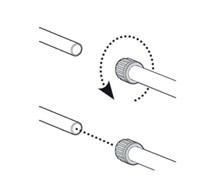 2、 将探盘连杆对准下端连杆的孔位装入探盘,并如图三所