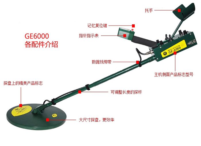 在使用旧式金属探测器时,最令人讨厌的问题是地面的影响。随着探头与地面的距离变化仪器的信号也跟着变化,若把探头扫过凹凸不平的地面,这个变化就更大了,操作者仿佛到处都听到信号声,弄不清哪里真正埋有金属。这种现象叫做“矿化反应”。造成“矿化反应”的原因,是由于构成土壤的各种矿物使仪器发出信号,在土壤结构复杂的地方“矿化反应”非常强烈,它引起的信号比金属信号还要大,这时操作人员就很难判断发出信号的地方到底是埋有金属还是“矿化反应”。金眼GE6000仪器内设有地平衡线路,能排除一切“矿化反应”的影响,只有在探头遇到金属时才发出信号,从而大大提高了探测深度和准确性。整体电子化,运用延伸的硅晶体管技术,所以其操作很稳定准确! 探测仪内置喇叭和外置耳机;使得其程序更加简单。该仪器摆脱了电容效果,因为它是由铝合金制造的并且使用的是单独的输送源:传输器和接收器;仪器免受错误探测信号的干扰,它的准确率是非常高。采用垂直探测技术,这种情况就非常适合在周围都是金属的地方进行探测,它只通过接收器感应器对垂直下方是否有目标物进行报警,该信号是非常精确。