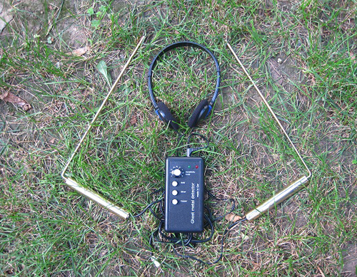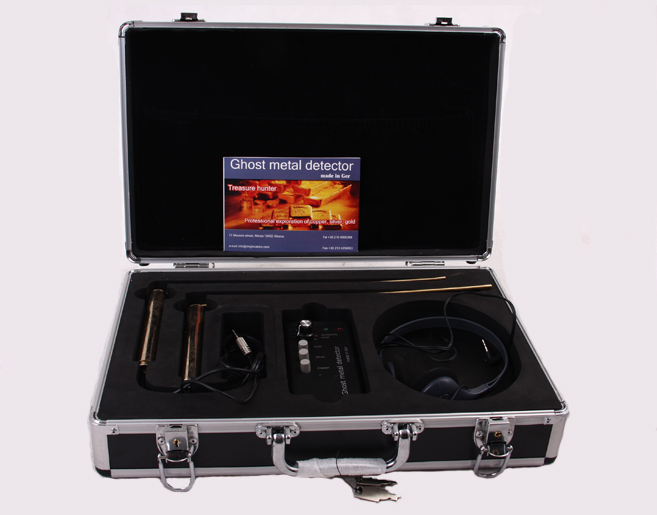 多年来人们使用各种设备做实验,研发这种功能强大的幽灵1号发射器,它能发射无线电频率(RF)信号,稳定性精确度达0.1Hz,能够只刺激所需的元素。信号稳定性的精确度由光谱中技术先进的微芯片实现,其运行速度为40MIPS。信号以不断变化的波形穿透土壤以下较远距离,波形过滤掉土壤矿物质导致的干扰。射出的信号按360°方向导入土壤。由于被导入的信号,目标物变得“可见”。可以确定各个方向上的目标物的位置,不限于只从某一方向搜索。从幽灵1号地下金属探测仪发射信号,预想目标物回以稳定的相同信号。操作人员可以使用“L”形天线杆追寻该稳定信号,因此可以排除所有不想要的目标物。光谱和目标物之间的信号成为操作人员追寻目标物的“通道”。如果幽灵1号的定位范围内存在目标物,则整个程序将在几分钟内完成。