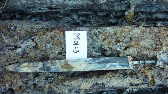 岳阳市文物管理处一位罗姓研究员介绍,23座墓都呈东西向,墓葬内,墓壁制作规范,墓内填土都是经过制作的“五花土”。这批墓葬已出土的文物有青铜器、玉器、陶器、滑石器。青铜器以剑、戈、矛、箭镞为主,玉器有玉佩、玉饰等,陶器有鼎、敦、壶、豆等,滑石器有滑石壁等。“墓葬内,还发现了一把青铜兵器,虽然已过2000多年,但还闪闪发光。”罗研究员说,这件青铜器非常锋利,保存状况非常好,约50多公分长。至于青铜兵器经过2000多年依然闪闪发光的原因,罗研究员解释称,是由于白膏泥的保护作用,而在那个年代,青铜器造型别致,生产工艺复杂。