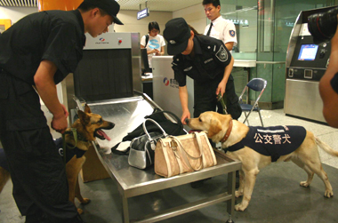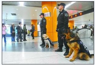 出到广州火车站外,更是能发现广州地铁公安已每天派每组2人的特警(共20人)携带警犬,配合地铁员工在线网各站加强检查,确保广州地铁安保工作有序进行,保障市民的出行安全。