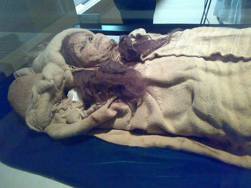 这具木乃伊便是著名的小河公主,由瑞典考古学家贝格曼(Folke Bergma)于1934年在新疆罗布泊的小河五号墓地发现。这些奶酪位于小河公主颈部与胸部。它们被零散放置,经过数千年后呈现树枝状。近日,德国科学 家在对这些树枝状物质进行检验后,惊奇地发现它们竟然是公元前1615年的奶酪。