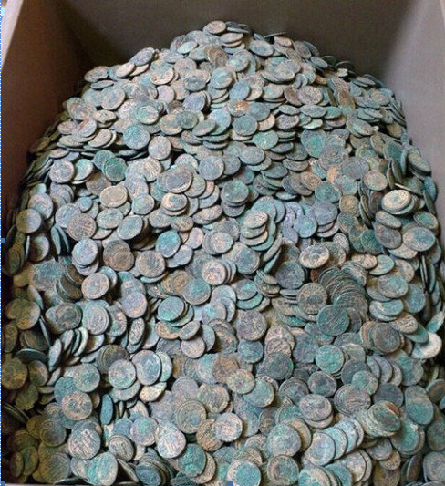 他马上挖了几下。没想到真的挖到了东西,而且是大量古硬币。也就这样,他把欠了的债全部还清了,而且在村上一夜间就成了富豪。