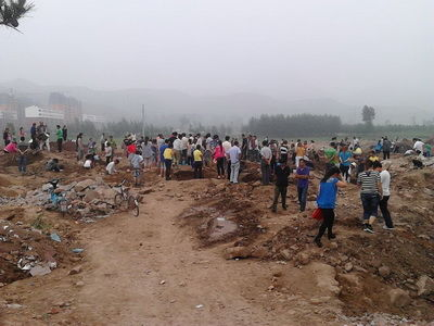 近日,大伙都在谈论一个话题——“挖宝”。昨日15时许,我跟爸爸到寻宝现场。县殡仪馆附近,这里有很多的村民,他们拿着铁锹、锄头在地上挖“宝贝”。所有人被热日晒的满面通红。