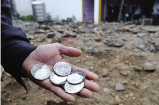 4月9日下午,石庄镇凤鸣村南街区某建筑工地,工人陈某用金属探测器从地下挖出了大量银元。但银元出土后就被现场的被30多人拿走了。经过耐心细致的工作,共700多枚银元陆续从民工手中交了上来。有人估算,不考虑其文物价值,仅按银器价值,这批银元总价近几十万元。目前,这批银元已由如皋市博物馆收藏。如皋市公安局经侦大队大队长丁亚明立即带人赶到现场对这批文物进行追缴。