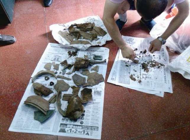 11月中旬,赵某在湖北省随州市在一处工地上利用地下银元探测仪在一堆渣土找到了大量青铜器碎片。