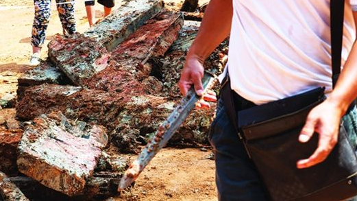 11月15日早9点半左右,长沙市公安局接到长沙市文广新局值班电话说:在长沙开福区九尾冲浏阳河小学的建筑工地有人利用探宝器挖出一把古剑,还有不少坛坛罐罐,还有一把戈,不但没有生锈,而且摸上去还很锋利。现在工地已经混乱,附近的村民都聚集在挖宝。