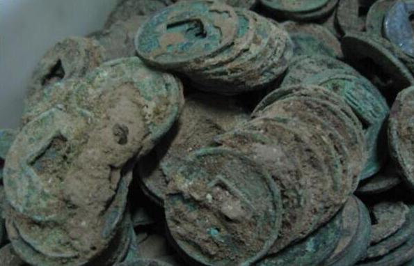 江西上饶的刘先生打个十几年工觉得没什么前途就回到老家准备去承包村里的后山种果树。他在山丘到处挖坑种树苗!挖的时候无意中发现有金属的声音,刘先生把那金属拿出来洗干净一看是一枚铜钱。当时刘先生也没在在意,第二天他再去挖坑的时候又有金属的声音,他拿出那金属去洗了下发现是和昨天一样的铜钱!当时刘先生就觉得哪里可能有许多这样的铜就去网上买了一个金属探测器,开启了他的探宝之行!