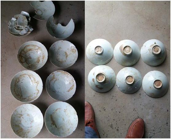 河南省驻马店王某美国原装EPX10000数字频率合成雷达远程探测仪一次寻到一些瓷器,可惜的事由于瓷碗太薄了在挖的过程中不小心捣碎好多个.