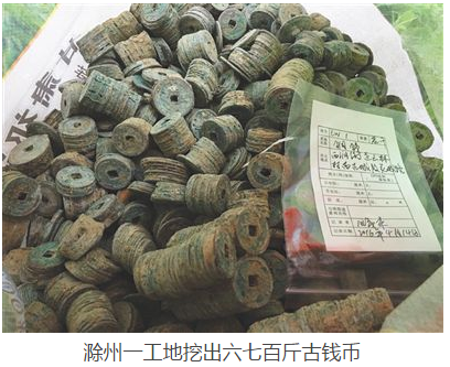 安徽滁州工地人员用探测器挖出万枚铜钱