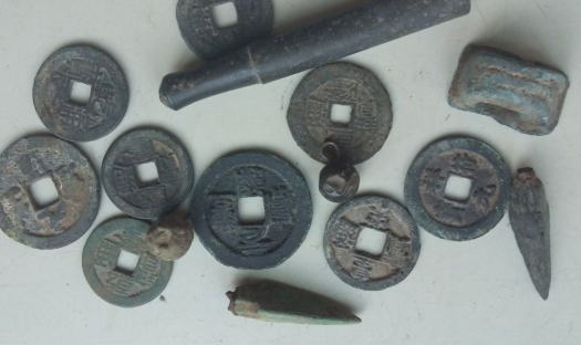男子使用地下金属探测仪器找出不少铜钱