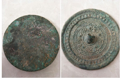 3月10日,安徽省阜阳市临泉县陈某使用刚美国T2金银探测仪器找出铜镜。据陈某称,他以前一直有使用地下探测仪器,以前也用过很多型号的探测仪器,但是有效都不是很理想,例如很多国产仪器都区分不了金属。后来经过一段时间的了解,朋友的介绍,才决定再购买这款美国T2探测仪器的。仪器操作也简单,比自己以前用过的仪器都简单。在3月10日的时候,陈某约了几个朋友到附近的田野探测,找了两三小时还是什么都没找到,突然自己的仪器发出了声音,屏幕还显示63的数字,于是陈某确定地下肯定存在铜。于是跟朋友拿上工具,在探盘底下挖,挖了一米多的时候发现了一个有锈迹的铜镜。陈某跟朋友都觉得很兴奋,毕竟在野外寻宝也不是经常能找到宝物,这次能找到这块铜镜估计能值不少钱。